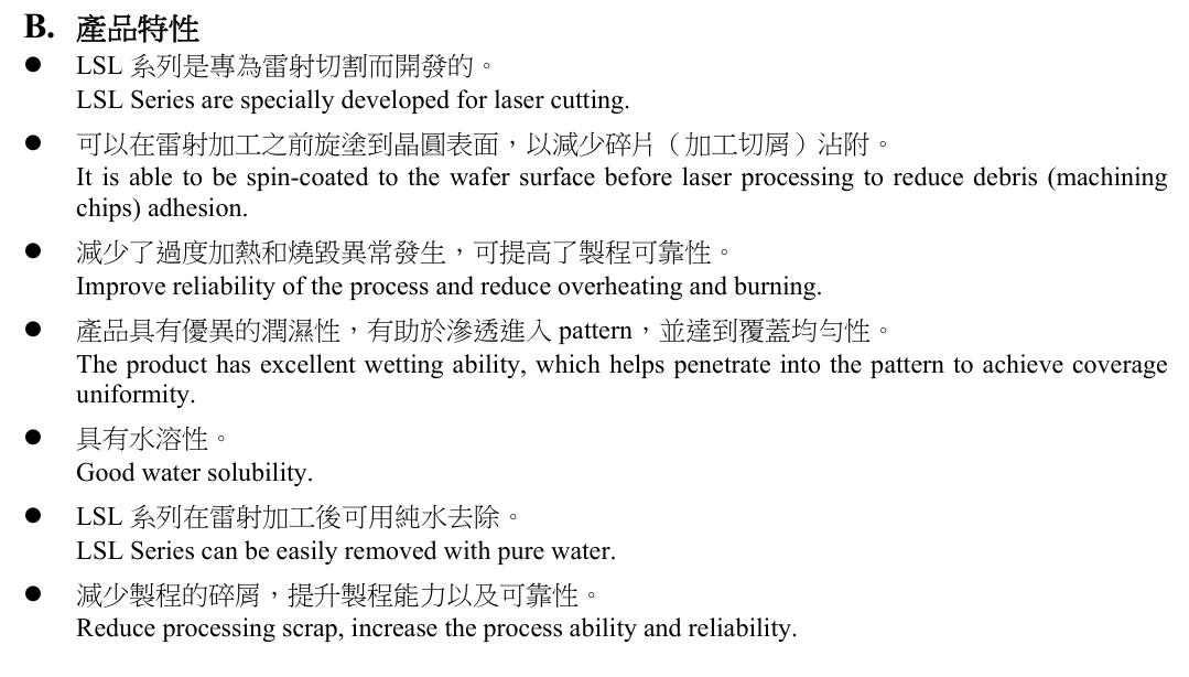 雷射切割保護液 Laser Sawing Liquid - LSL